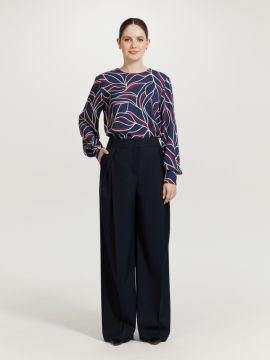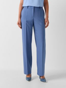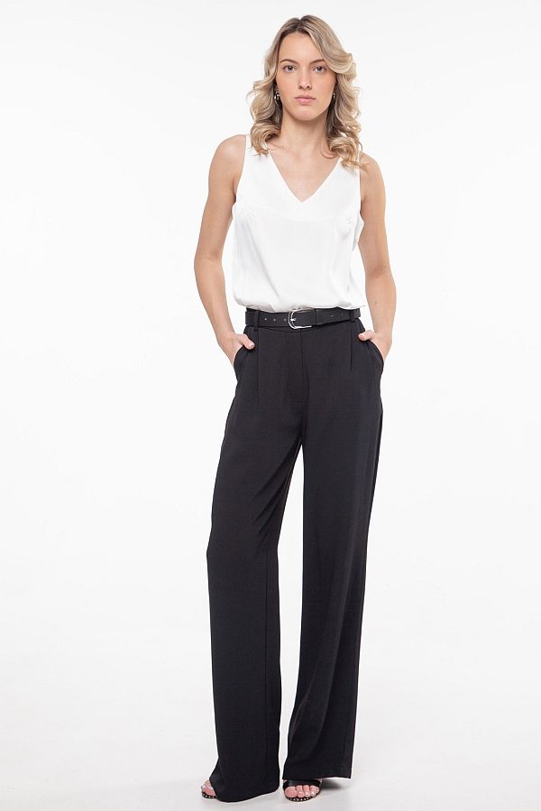 Брюки прямого кроя из струящейся ткани, со складками по переду и шлёвками для ремня.