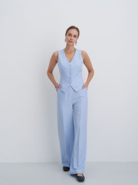 2940401 Брюки прямые с разрезами по низу передних половинок, черные