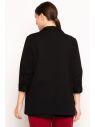 Жакет женский прямого силуэта, без застежки, с разрезами в боковом шве. Рукав втачной, длинный. Борт прямой, воротник отложной с острыми концами. Перед с двумя нижними накладными карманами. Срезы подборта, обтачки горловины спинки и низа изделия окантованы шелковой тканью с принтом.
