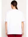 Блуза женская из тонкого трикотажного полотна с добавлением эластана, прямого силуэта. Горловина круглая, с притачной бейкой. Рукав втачной, короткий. Посередине переда настрочен прямоугольник из принтованного шелка.