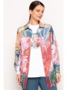 Блуза женская из тонкого трикотажного полотна с добавлением эластана, прямого силуэта. Горловина круглая, с притачной бейкой. Рукав втачной, короткий. Посередине переда настрочен прямоугольник из принтованного шелка.