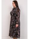 Платье женское полуприлегающего силуэта, отрезное по линии талии. Нижняя часть переда и спинки клешеная. Перед с центральной застежкой на планку с петлями и пуговицами. Рукав втачной, длинный с манжетой по низу, застегивающейся на петлю и пуговицу. Воротник на стойке. По шву талии верхняя и нижняя часть переда и спинки частично собраны в легкую сборку. К платью прилагается съемное платье-чехол из тонкого трикотажного полотна.