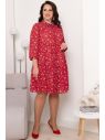 Платье женское трапециевидного силуэта, отрезное выше линии талии. Нижняя часть переда и спинки из двух воланов, собраных в сборку. Верхняя часть переда с кокеткой. . Перед с центральной застежкой на планку с петлями и пуговицами. Рукав втачной, 3/4 с манжетой по низу, застегивающейся на петлю и пуговицу. Воротник на стойке. К платью прилагается съемное платье-чехол из тонкого трикотажного полотна.