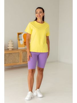 Блуза женская прямого силуэта. Горловина круглая, плечо спущенное, рукав втачной, короткий. Горловина обработана бейкой из основного сырья.