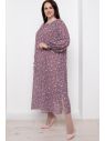 Платье женское А-образного силуэта, с открытой шлицей в боковых швах, с завязывающимся съемным поясом. Горловина круглая, со сборкой по горловине переда и спинки. Спинка с фигурным разрезом в среднем шве и с завязками из окантовочной бейки .Рукав реглан, длинный, по низу собран в сборку на шпульную резину . К платью прилагается чехол из трикотажного полотна. Ткань верха - шифон - мультиколор. Основной цвет - розово - сиреневый.
