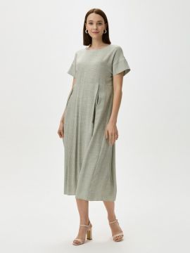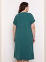 Платье женское А-образного силуэта, из трикотажного полотна с люрексом, с карманами в боковых швах.Горловина круглая, рукав цельнокроенный, короткий, на притачной манжете.Основной цвет - изумруд.
