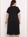 Платье женское А-образного силуэта, из трикотажного полотна с люрексом, с карманами в боковых швах.Горловина круглая, рукав цельнокроенный, короткий, на притачной манжете.Основной цвет - черный.