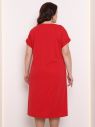 Платье женское А-образного силуэта, из трикотажного полотна с люрексом, с карманами в боковых швах.Горловина круглая, рукав цельнокроенный, короткий, на притачной манжете. Основной цвет - красный.