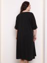 Платье женское трапециевидного силуэта из трикотажного полтна с люрексом. Горловина круглая, рукав цельнокроенный, 3/4, по низу на притачной манжете с патой. Основной цвет - черный.