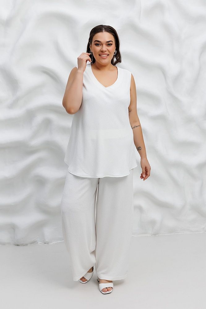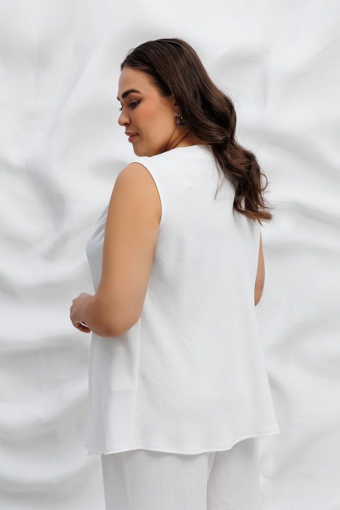 Блуза женская А - образного силуэта, без рукава. Горловина V - образная. Изделие выкроено по косой нити основы, что придает ему особое прилегание.
