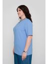 Блуза женская прямого силуэта. Горловина круглая, с притачной бейкой. Рукав втачной, короткий. По переду выполнена вышивка. Изделие изготовлено из кулирной глади.