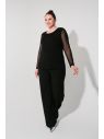 Блуза женская полуприлегающего силуэта. Горловина круглая, рукав втачной, длинный. Перед и спинка из трикотажного полотна с содержанием вискозы, рукав из трикотажной сетки.