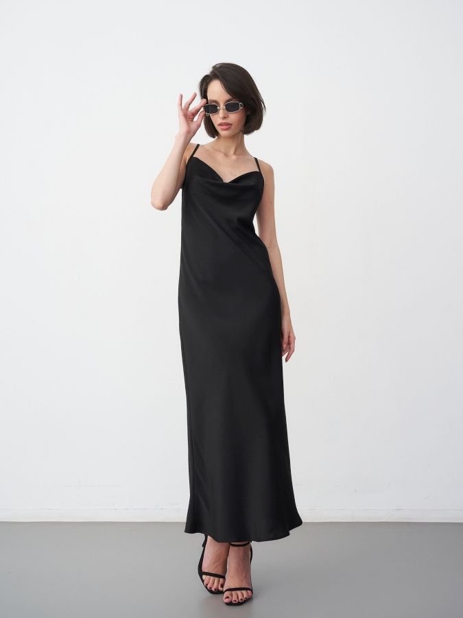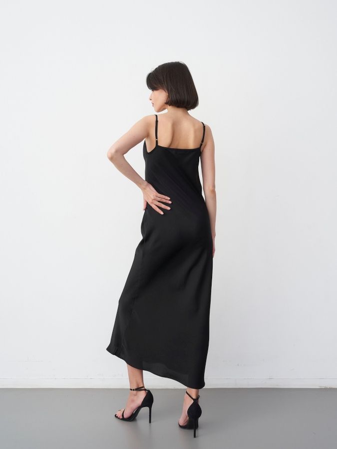 Шелковистое платье-комбинация на регулируемых бретелях.