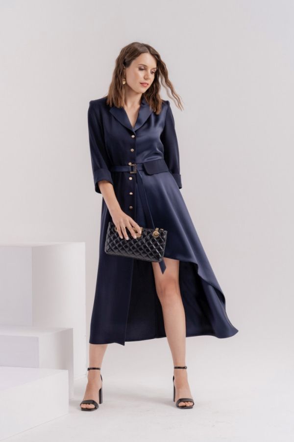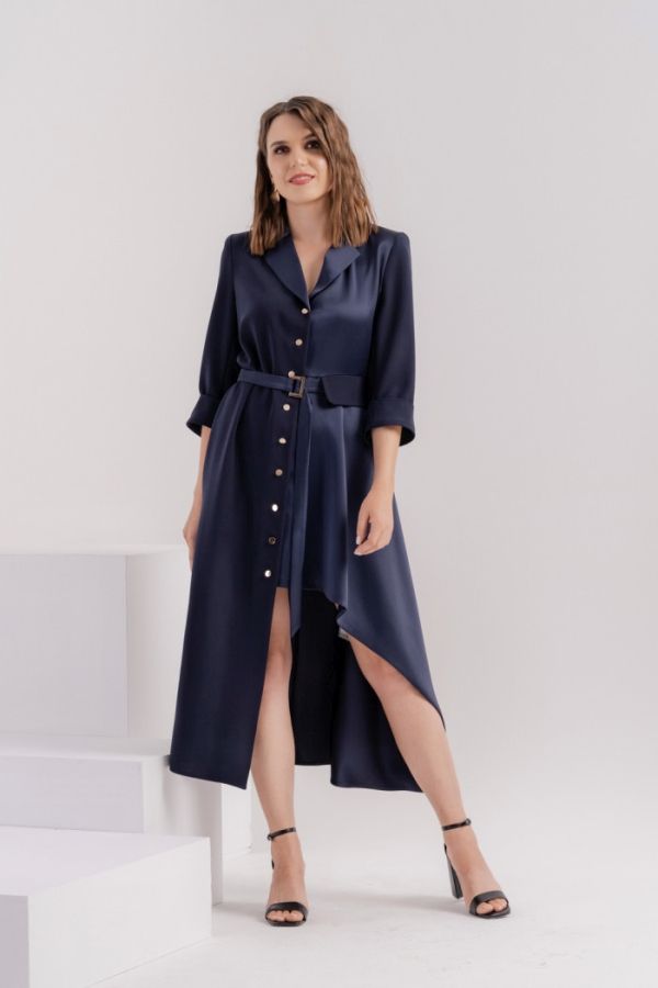 Изделие дополнено съемным поясом из отделочной ткани с пряжкой.