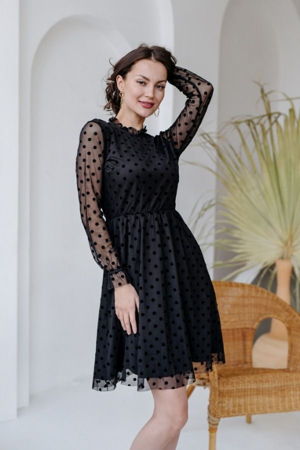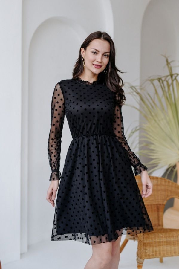 910021 Платье черное Джесси (горох) Farberry