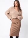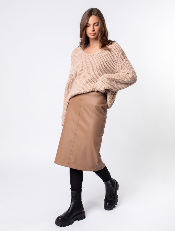 Юбка на высокой талии с разрезом сзади. Выполнена из эластичной эко-кожи: идеально повторяет силуэт. С декоративным вертикальным швом и скрытой молнией из высококачественной фурнитуры под золото. Классика вне времени в современном прочтении.