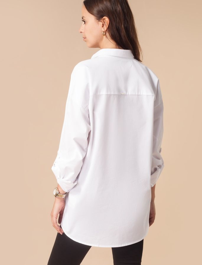 Блузка свободного силуэта из плотной хлопковой ткани. Спущенная пройма и возможность крепления рукава на пату. Лаконичный принт выполнен водной краской с устойчивым покрытием. Блузка с принтом достойная альтернатива строгой офисной рубашке. Сочетается с любыми низами. Отличный вариант стиля smart-casual, который удобен в любой ситуации.
