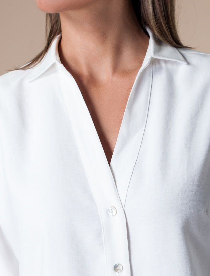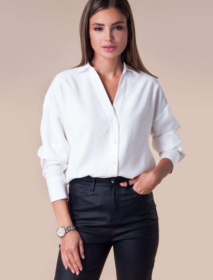 Блузка из плотной струящейся вискозы с V-образной линией борта