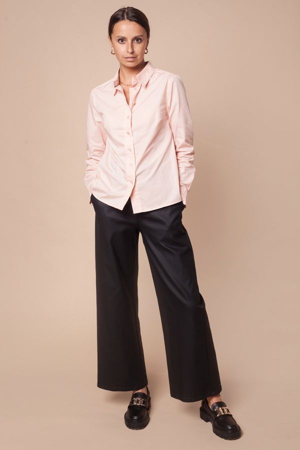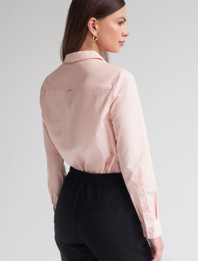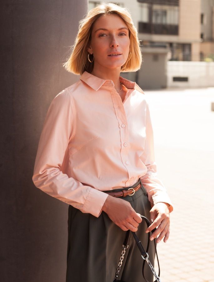 Укороченная базовая блузка с разрезами по бокам. Выполнена из хлопкового поплина с добавлением ПЭ. Застежка на пуговицы в тон изделия. Силуэт по фигуре обеспечивает максимально комфортное сочетание с любым низом взаправку. А трендовая укороченная длина ставшая must have, позволяет носить изделие поверх низов с высокой посадкой.