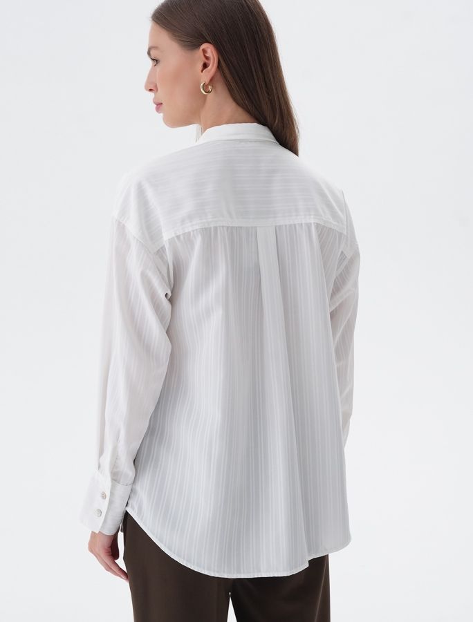 Свободная блузка из легкой ткани в полупрозрачную полоску