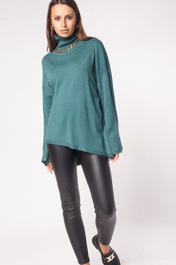 Свободный свитер с ассиметричным низом тонкой вязки на 14 классе машин с шерстью мериноса. Легкий, комфортный и при этом очень теплый. Абсолютно не колет даже нежную кожу новорожденных малышей. Совет стилиста: если хотите собрать костюм, сочетайте с брюками D38.006 в тон. С кожаными брюками и массивными ботинками, придав образу брутальности. В офис соблюдая дресс-код с брюками из твида или однотонными из джерси.