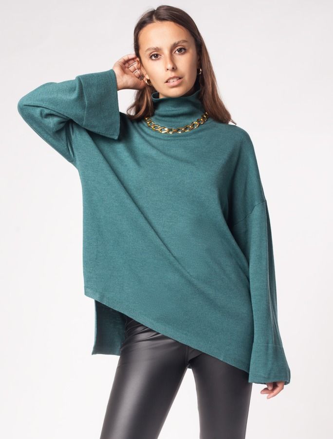 Асимметричный свитер тонкой вязки с шерстью мериноса