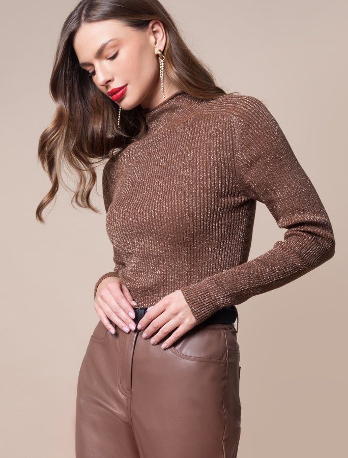 Свитер тонкой вязки лапша с добавлением мягкого люрекса. Эластичный и абсолютно комфортный к телу. Идеально сидит по фигуре, подчеркивая достоинства. Совет стилиста: для вечернего образа сочетайте вместе с юбкой из эко-кожи или юбкой-сеткой. В повседневном образе, с классическими брюками, жакетом и денимом.