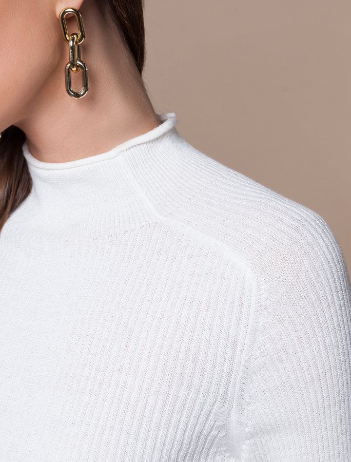 Свитер тонкой вязки лапша с добавлением мягкого люрекса. Эластичный и абсолютно комфортный к телу. Идеально сидит по фигуре, подчеркивая достоинства. Совет стилиста: для вечернего образа сочетайте вместе с юбкой из эко-кожи или юбкой-сеткой. В повседневном образе, с классическими брюками, жакетом и денимом.