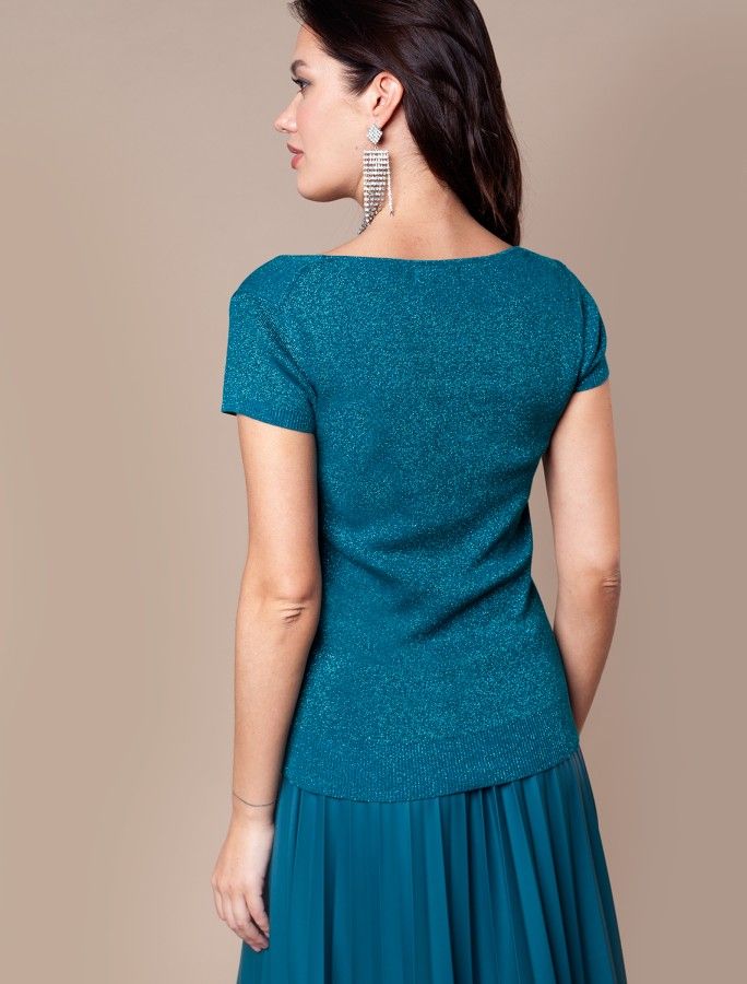 Прилегающий джемпер с люрексом и трендовым вырезом "каре".