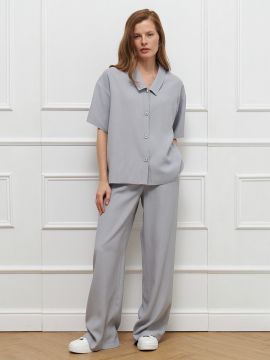 Брюки из легкого и объемного футера-трехнитки с начесом. Наличие ПЭ в составе, способствует эластичности, формоустойчивости и теплу. На поясе хлопковый шнурок в тон изделия выходящий из люверсов с высококачественной металлической фурнитурой и логотипом бренда. Внизу штанин регуляторы ширины, что позволяет носить изделие в двух вариантах: прямые брюки и джоггеры. Совет стилиста: идеально для холодной погоды в костюме с худи D49.788. В спорт шик или практичный аутфит комбинируйте с ботинками на грубой подошве, тренчем, курткой-рубашкой, пальто.
