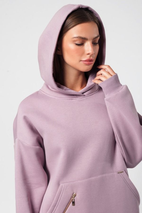 Свободное худи из легкого и объемного футера-трехнитки. Классическая модель с капюшоном, карманом «кенгуру» и дополнительным карманом на молнии. Наличие ПЭ в составе, способствует эластичности, формоустойчивости и теплу. Совет стилиста: идеально для холодной погоды в костюме с брюками D44.100. В спорт шик или практичный аутфит комбинируйте с тренчем, безрукавкой, курткой-рубашкой, пальто.