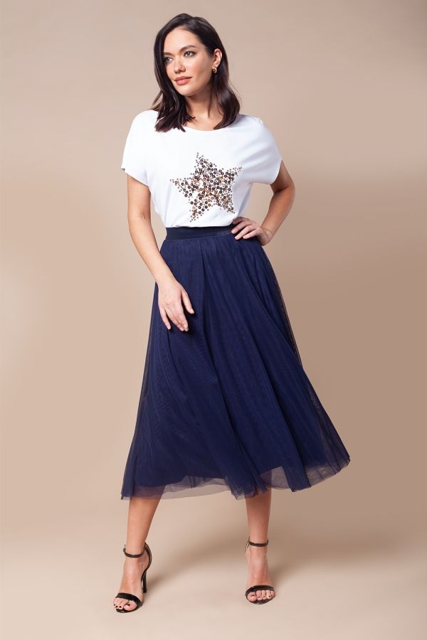 Футболка с цельнокроеным рукавом из премиального хлопка. Лаконичный принт вышит мерцающими пайетками. Отлично подойдет как для торжественных встреч, так и для повседневного образа в стиле glam chic. Самое высокое качество хлопковых волокон с добавлением эластана. Идеально держит форму и сохраняет внешний вид в течение договременного использования.
