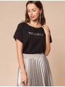 Футболка с цельнокроеным рукавом из премиального хлопка. Лаконичный принт вышит мерцающими пайетками. Отлично подойдет как для торжественных встреч, так и для повседневного образа в стиле glam chic. Самое высокое качество хлопковых волокон с добавлением эластана. Идеально держит форму и сохраняет внешний вид в течение договременного использования.