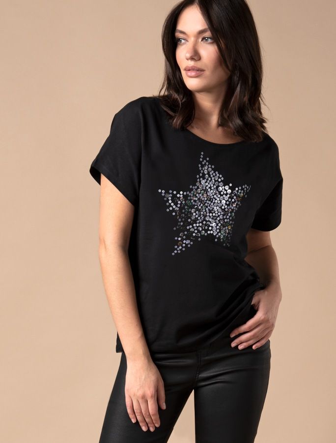 Футболка с цельнокроеным рукавом и вышивкой пайетками