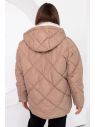 Ткань: плащевая, наполнитель био-пух. Куртка зимняя,стеганная, спереди застежка на замок и пуговицы, прорезные карманы на кнопке, воротник-стойка на двух пуговицах, с мехом, утепленный, отстегивающийся капюшон. Длина изделия ок. 70см. ( по спинке ок.80см.).