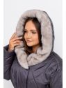 Ткань: плащевая, наполнитель био-пух. Куртка зимняя, прямого покроя, стежка в ромб, застежка на молнию и кнопки, прорезные карманы с листочками. Воротник шалевый,переходящий в капюшон, изнутри полностью отделан искусственным мехом под норку. К куртке прилагается пояс. Длина изделия ок. 85 см.