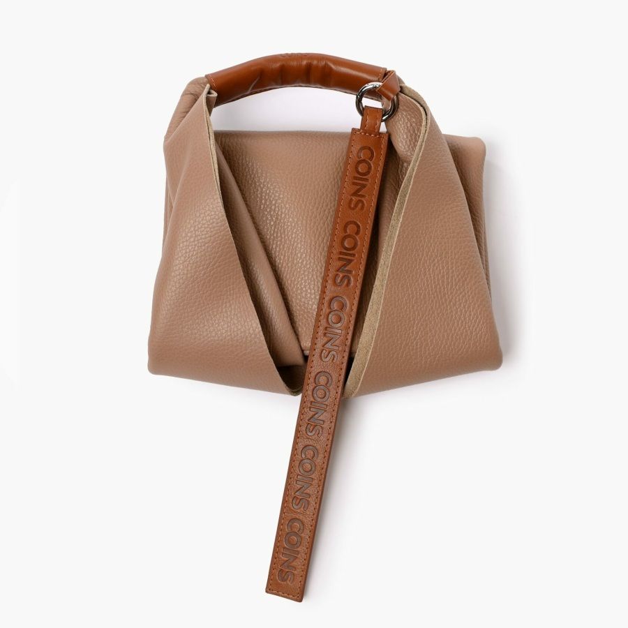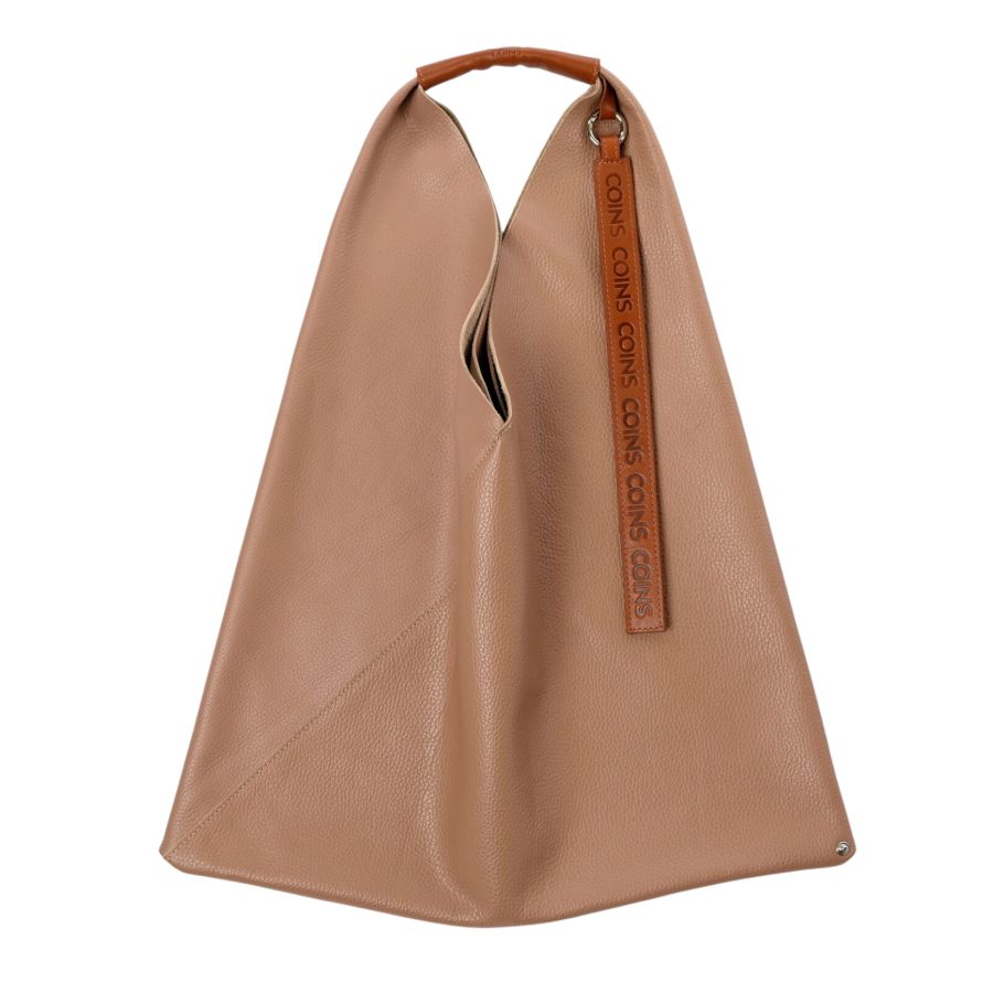 Имеет одно большое внутреннее отделение, внутреннюю застежку, декорирована брелоком с фирменным тиснением COINS.