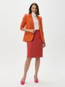 Для пошива юбки на подкладке длиной до колена и шлицей на спинке выбрали материал с принтом пье-де-пуль (гусиная лапка) с переплетением малиновых и оранжевых нитей. В составе ткани вискоза и эластан, поэтому вещь практически не мнется и комфортно облегает фигуру. А благодаря резинке в поясе юбка идеально сидит на талии. Предлагаем носить с джемпером С-12 ЛАН(В3) и парной блузкой Д-2009 ФИЗ(В3).