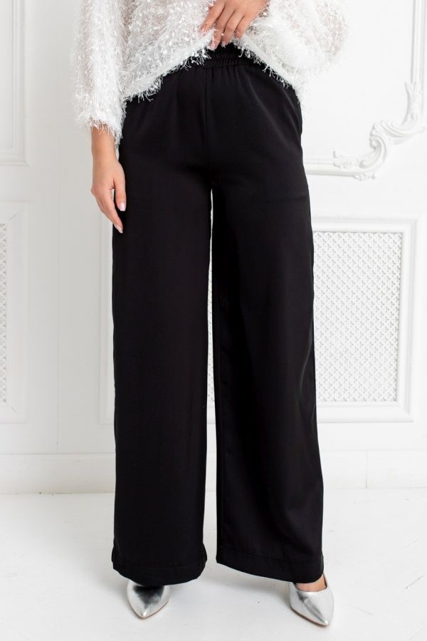 2940401 Брюки прямые с разрезами по низу передних половинок, черные