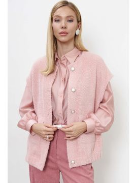 Ткань: экокожа. Брюки с широкими штанинами, с высокой посадкой, спереди застежка на молнию, в боковых швах косые карманы. Длина по внутреннему шву ок.78 см