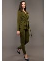 Ткань: креп-трикотаж. Жакет свободного покроя «оверсайз», пройма немного занижена, рукав - втачной, со съемным поясом. Длина ок.65 см. Брюки расширены книзу, посадка – средняя, в боковых швах – косые карманы, длина по внутреннему шву 76ок.