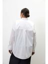 Oversize рубашка свободного силуэта с рубашечным воротником, с удлиненным рукавом, положение манжет рукава и застежка перенесены на бок, что создает интересный трендовый образ.