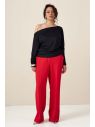 Прямые широкие брюки с карманами. По поясу резинка для комфортной посадки. Застежка на молнию и 2 пуговицы.