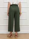 Укороченные брюки - кюлоты выполнены из льняного смесового материала в травяном оттенке. Мягкие складки спереди, боковые карманы, застежка гульфик, в поясе на спинке вставлена резинка. На фото брюки представлены с блузкой Д-203 ТРВ(Л5) и джемпером С-43 КАЦ(Л5).