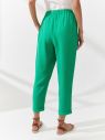 Укороченные брюки яркого зеленого цвета идеальны для летнего сезона. Карманы в боковых швах, эластичный пояс на резинке. Для пошива зауженной книзу модели с отворотами использовали тонкий легкий материал с жатым эффектом, поэтому в ней будет комфортно в течение всего дня.