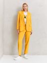 Горчично-желтые брюки классического кроя выполнили из мягкой эластичной ткани на основе вискозы. Приятный на ощупь материал почти не мнется и поддерживает комфортный микроклимат. Застежка - гульфик, боковые карманы, шлевки для кожаного ремня. Заутюженные стрелки зрительно вытягивают силуэт. Модель на фото представлена с джемперам С-36 КВЖ(В4) и жакетом В-911 НАД(В4).