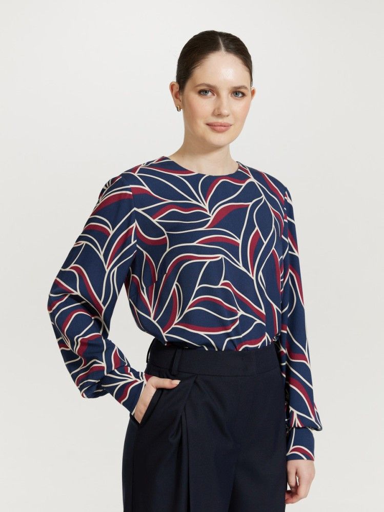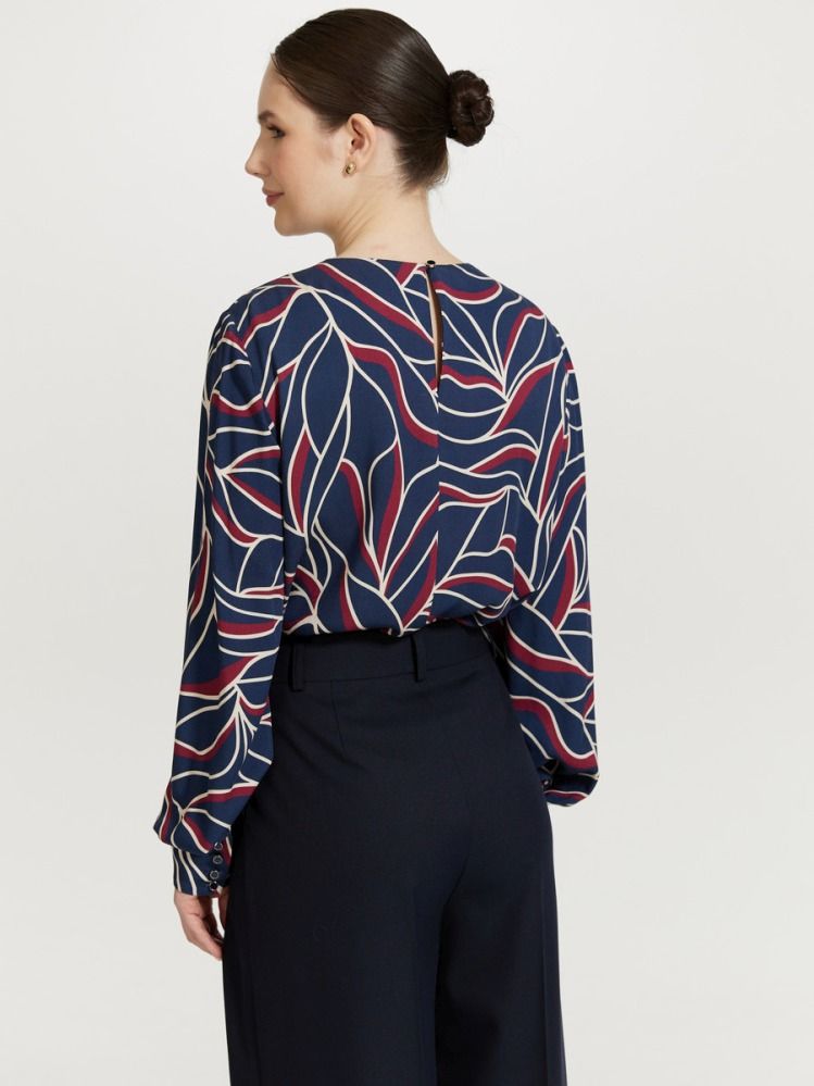 Блуза прямого силуэта с акцентными манжетами. Модель выполнена из комфортной вискозы с авторским принтом, разработаннном в лаборатории нашего бренда.