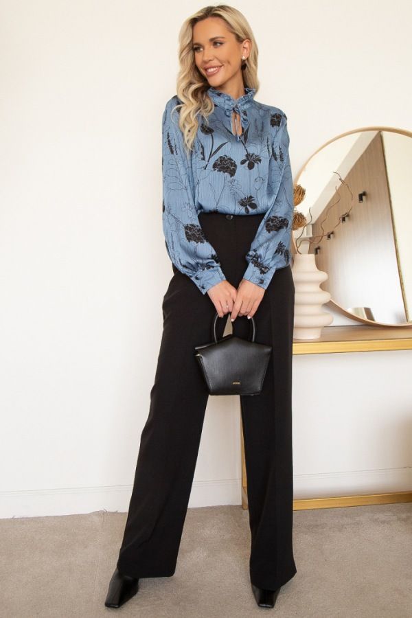 2940401 Брюки прямые с разрезами по низу передних половинок, черные