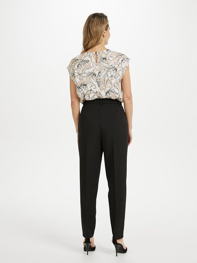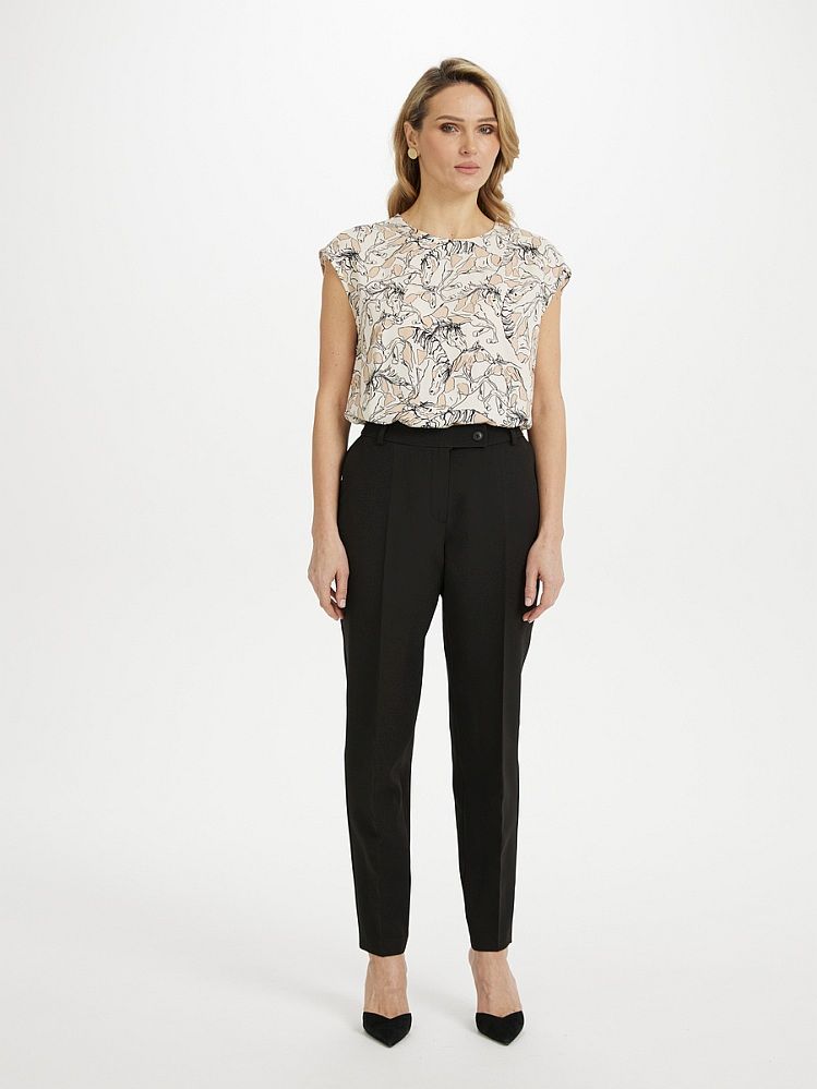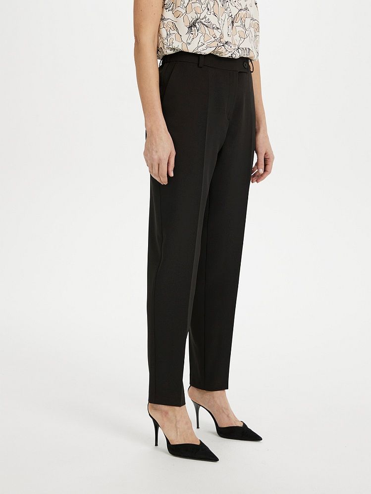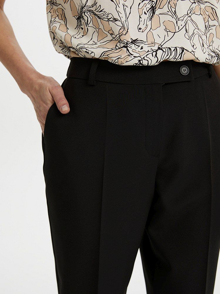 Классические брюки средней посадки в черном тоне. Изделие выполнено из несминаемой, комфортной костюмной ткани. Модель является базовой основой для создания "умного гардероба". В нашей капсуле идеально коплектуется с жилетом 2.9.3-415 и жакетом 2.3.3-867.