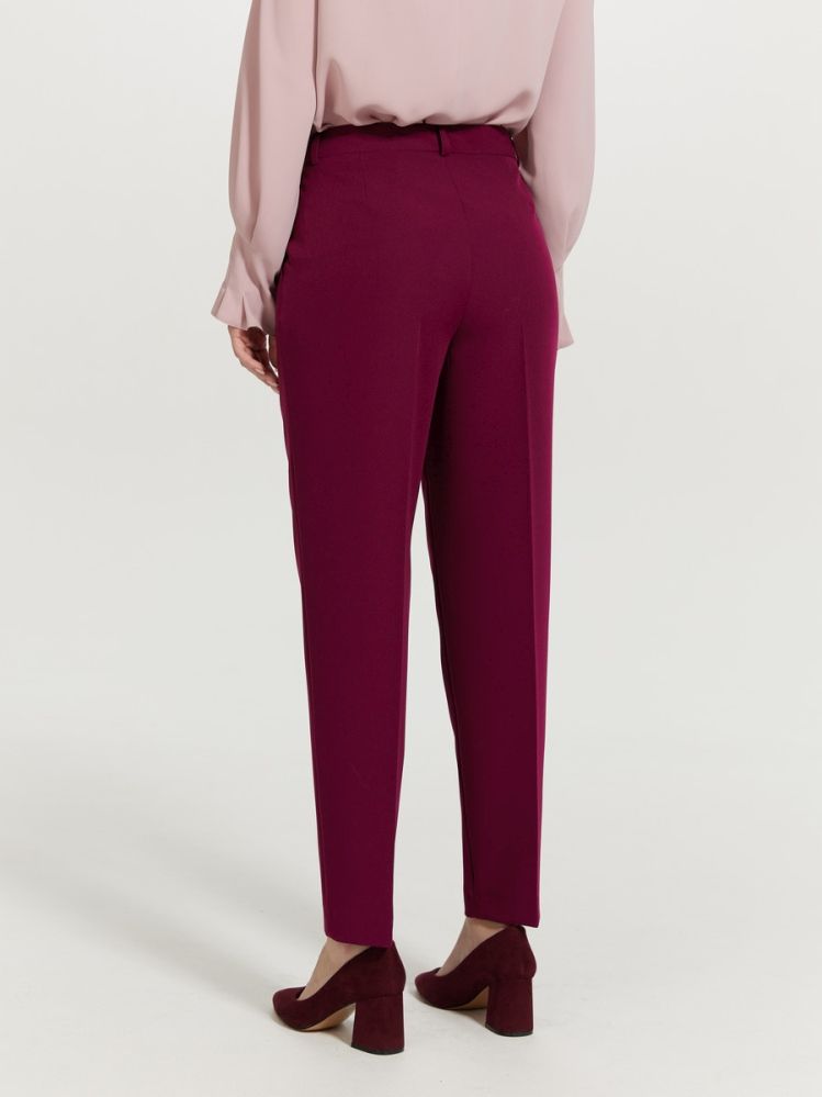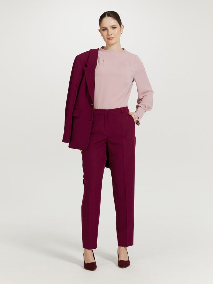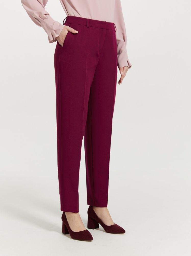 Брюки классического кроя, зауженные книзу. Застёжка на молнию и крючок. Боковые карманы. Модель выполнена из комфортной костюмной ткани с минимальной сминаемостью в благородном цвете красная слива. Идеально комбинируются с жакетом 2.3.1-871.